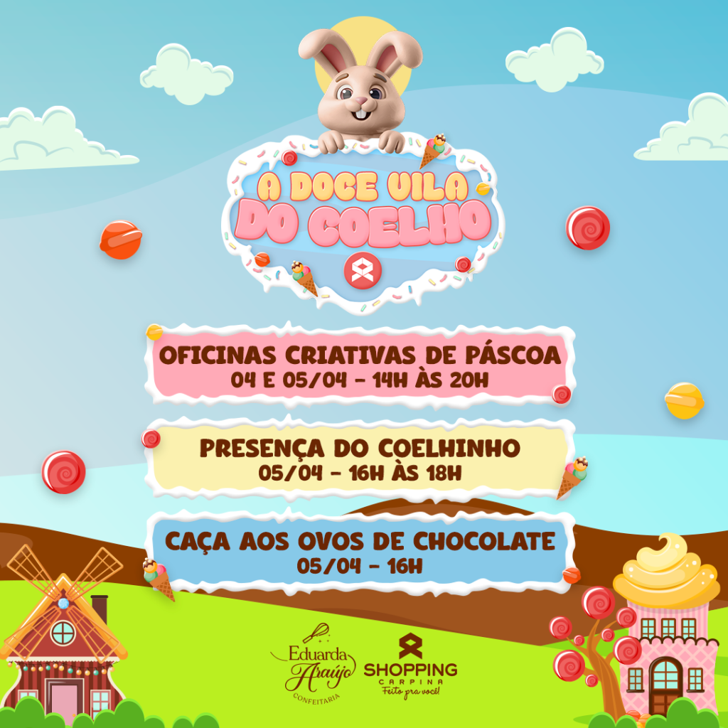 #ShoppingCarpina #DoceVilaDoCoelho #PáscoaNoShopping #CoelhinhoDaPáscoa #Carpina #VemProShopping #FeitoPraVocê
