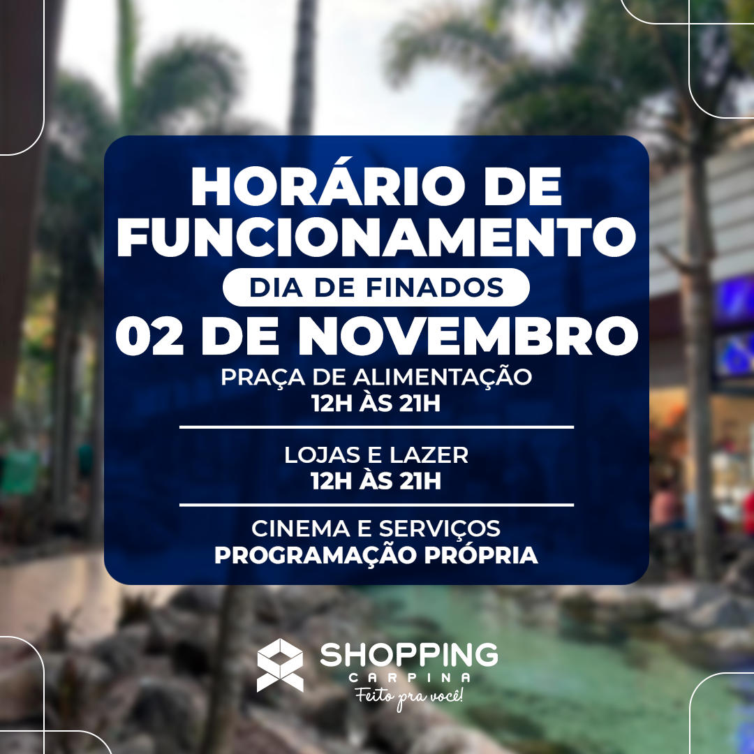 Neste domingo, 02 de novembro, o Shopping...