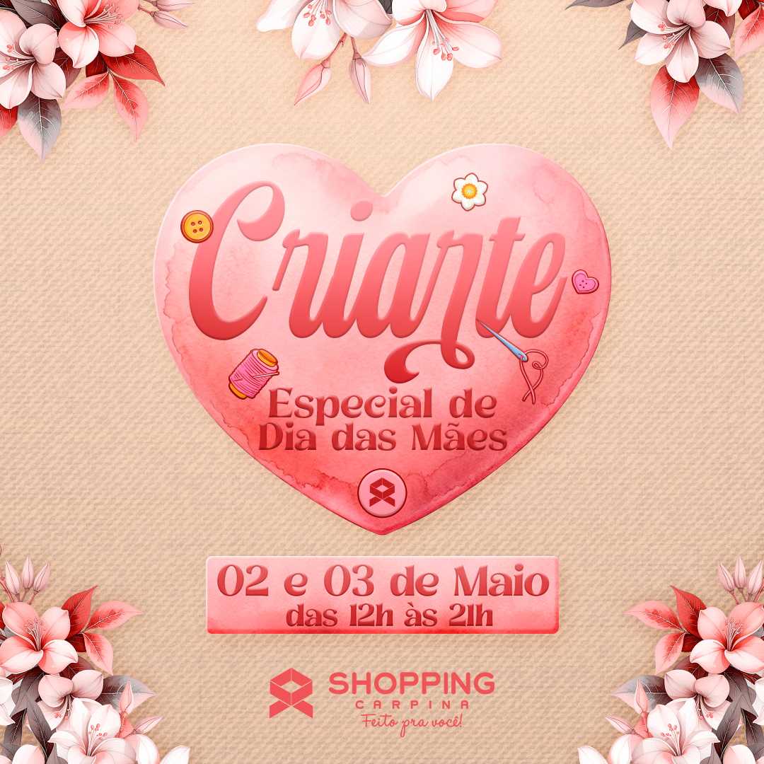 Já anota aí: dias 02 e 03 de maio tem Criarte especial de Dia das Mães 💐✨