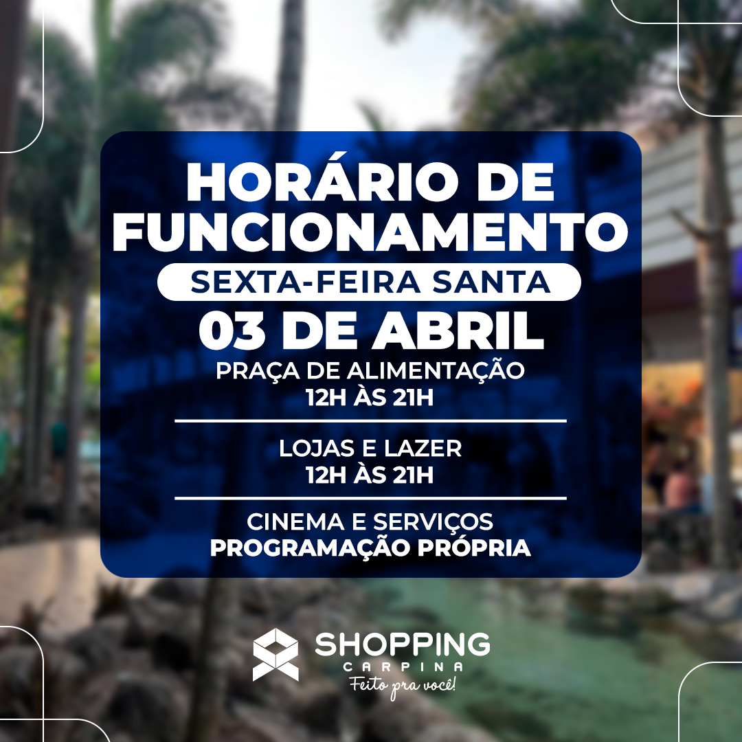 #ShoppingCarpina #SextaFeiraSanta #HorárioEspecial #VemProShopping #FeitoPraVocê