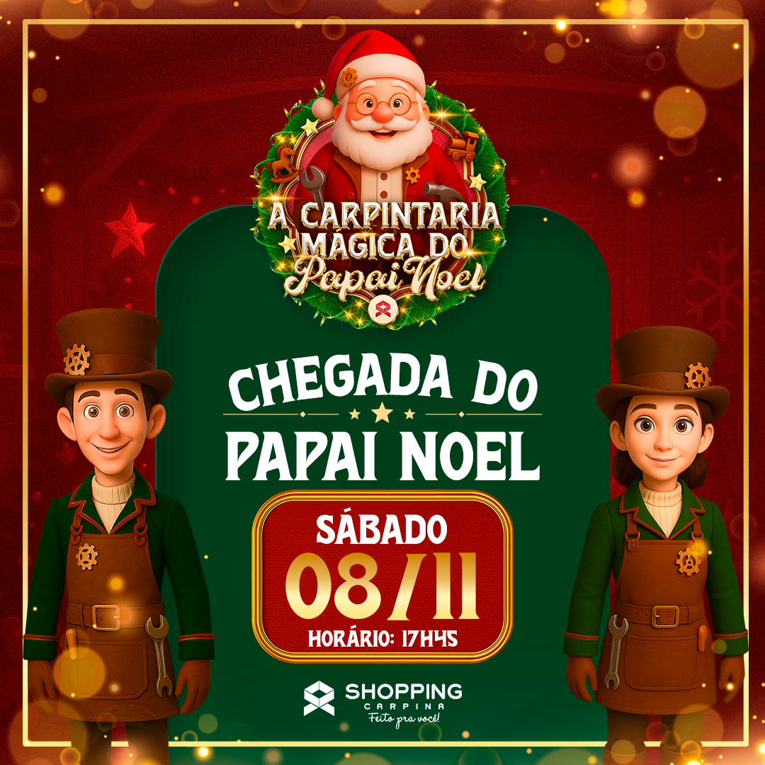 #NatalNoShoppingCarpina #CarpintariaMágicaDoPapaiNoel #ChegadaDoPapaiNoel #FeitoPraVocê #ShoppingCarpina #NatalMagico